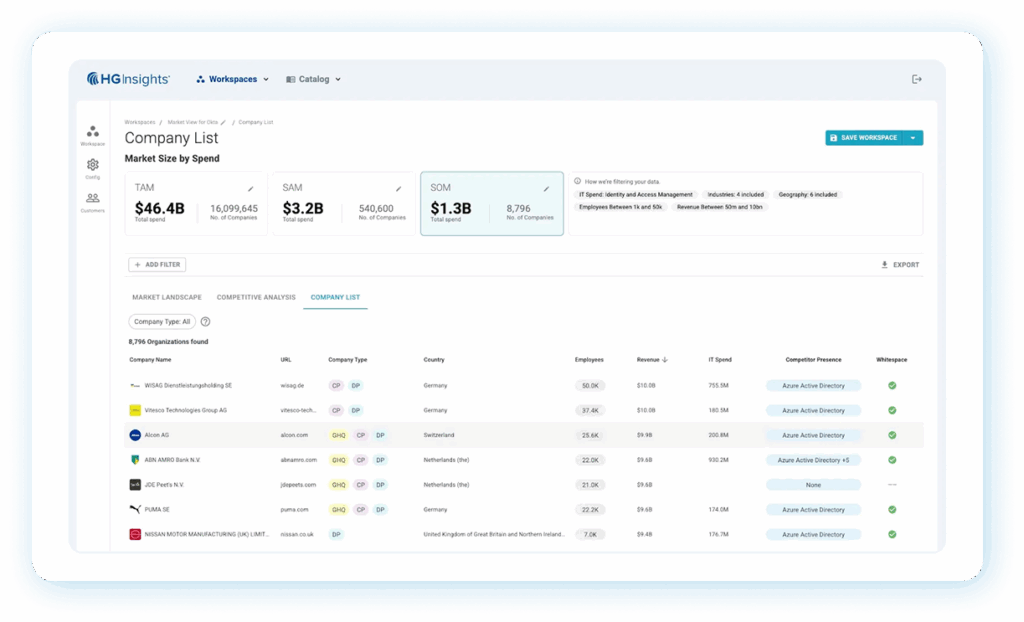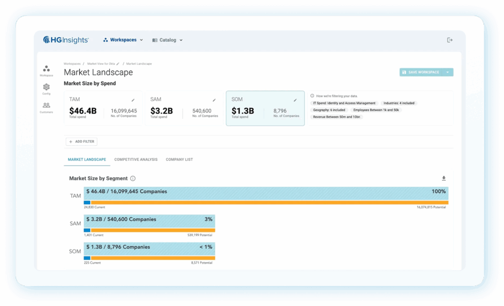 Traditional market analyst firms define the broad strokes of your market. HG Insights instead drills-down multiple levels, interactively going as specific as needed and completing your market intelligence picture.