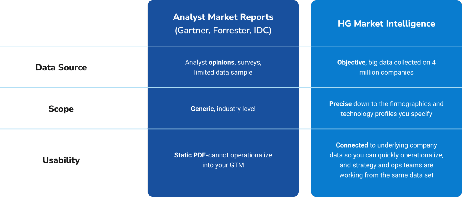 HG’s market intelligence platform helps you remove the guesswork from go-to-market decisions: