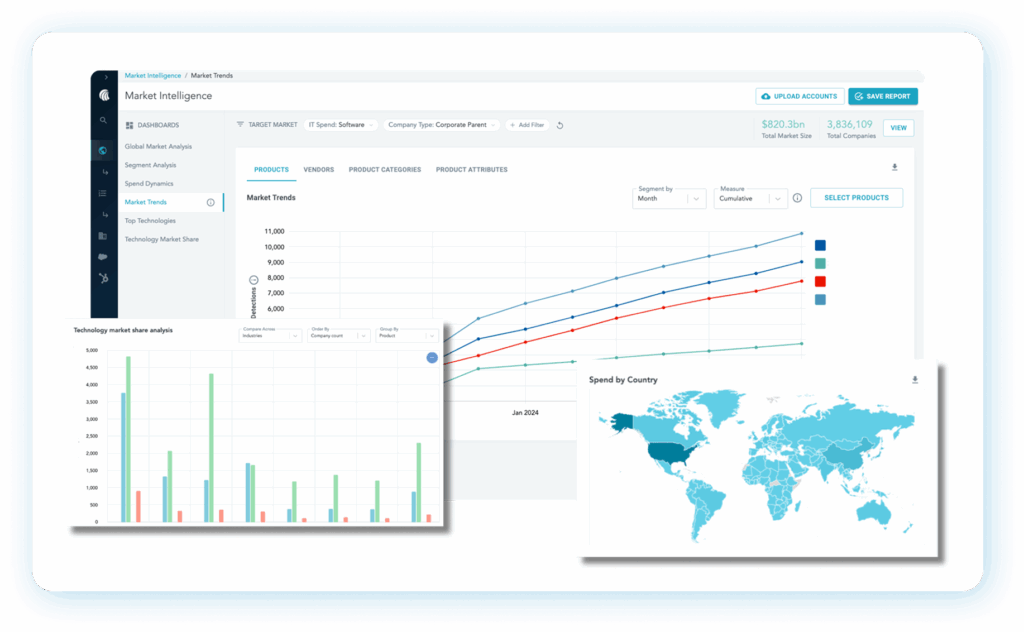 Take a short video tour of HG Insights Market Analyzer and Copilot. See a level of granularity, speed, and interactivity that static analyst reports and traditional market surveys can’t match.