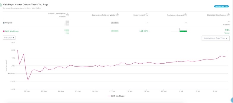 Dan ran an A/B test with Optimizely to measure the impact of the tailored experience and results were quick to be gathered.