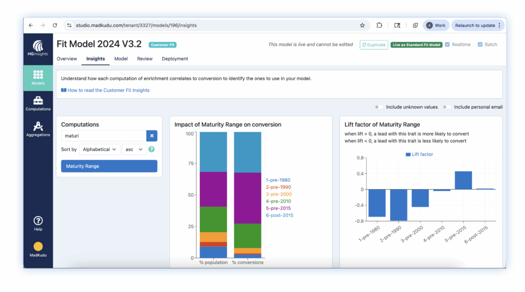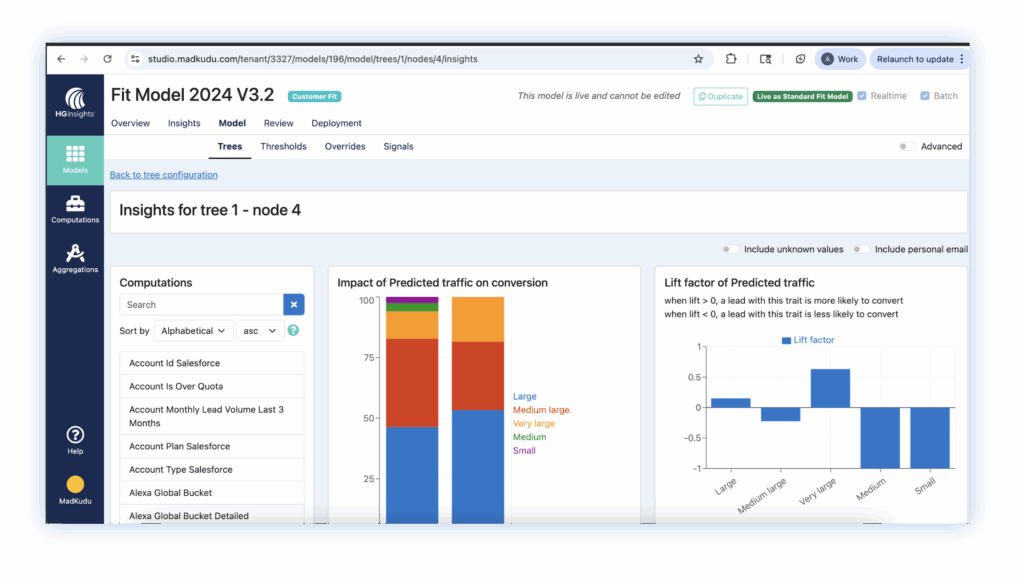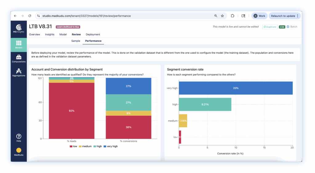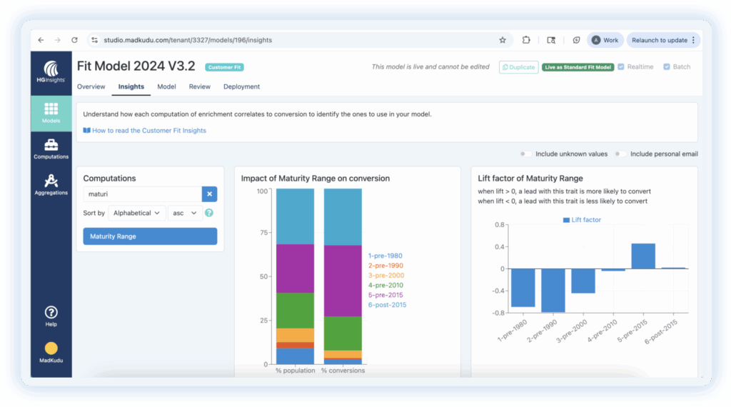 Compare models side by side, see which signals drive lift, and pick the scoring method that fits each GTM play.