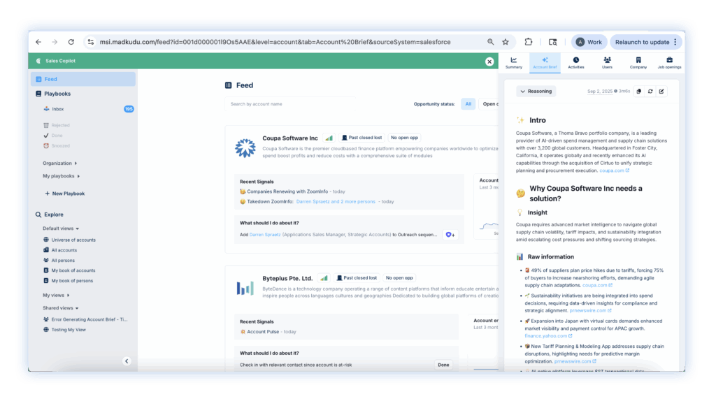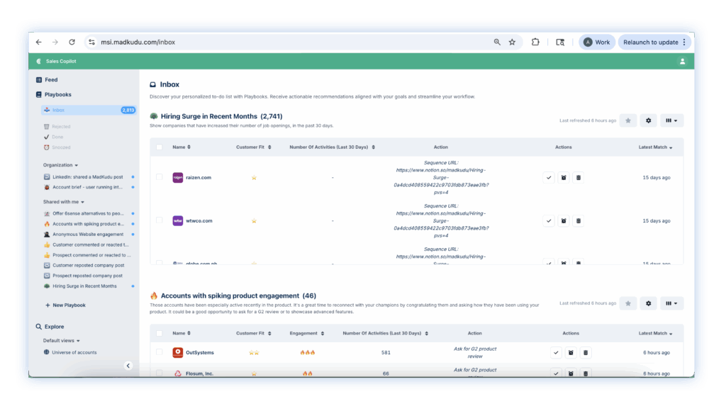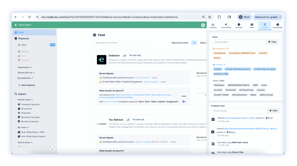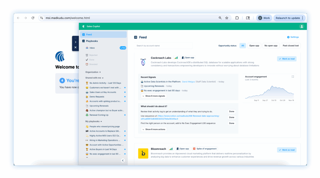 Sales leaders can arm reps with Sales Copilot playbooks directly into the CRM and web browser, so every seller sees who to call, why now, and what to say. Teams spend less time researching and more time in high-value conversations, turning buyer intent and account insights into higher win rates and larger deals.
