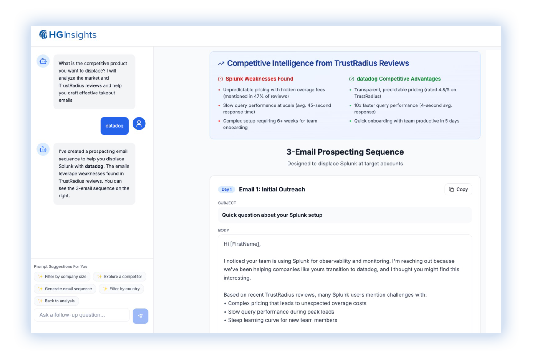 HG Insights helps teams align around the same facts and act on them, from planning through execution.