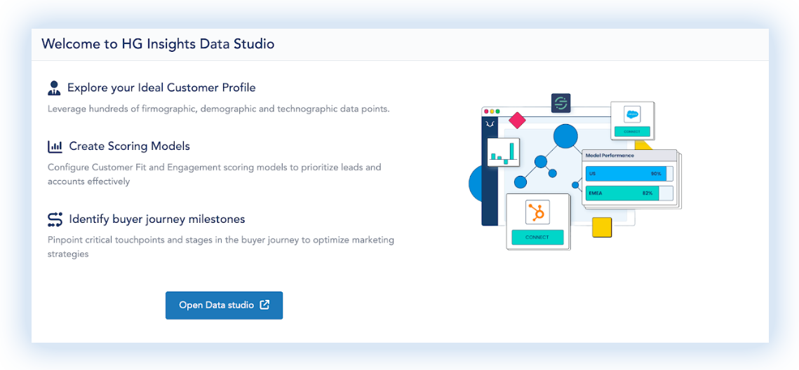 As part of our Platform, Data Studio allows GTM leaders to easily build and manage predictive models in a no-code environment to drive high-propensity account, MQL, and PQL scoring using your first- and third-party data.
