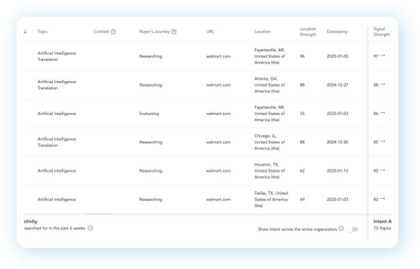 - Apply layered buyer intent with enhanced context and predictive scoring to focus campaigns and sales efforts on accounts most likely to convert.