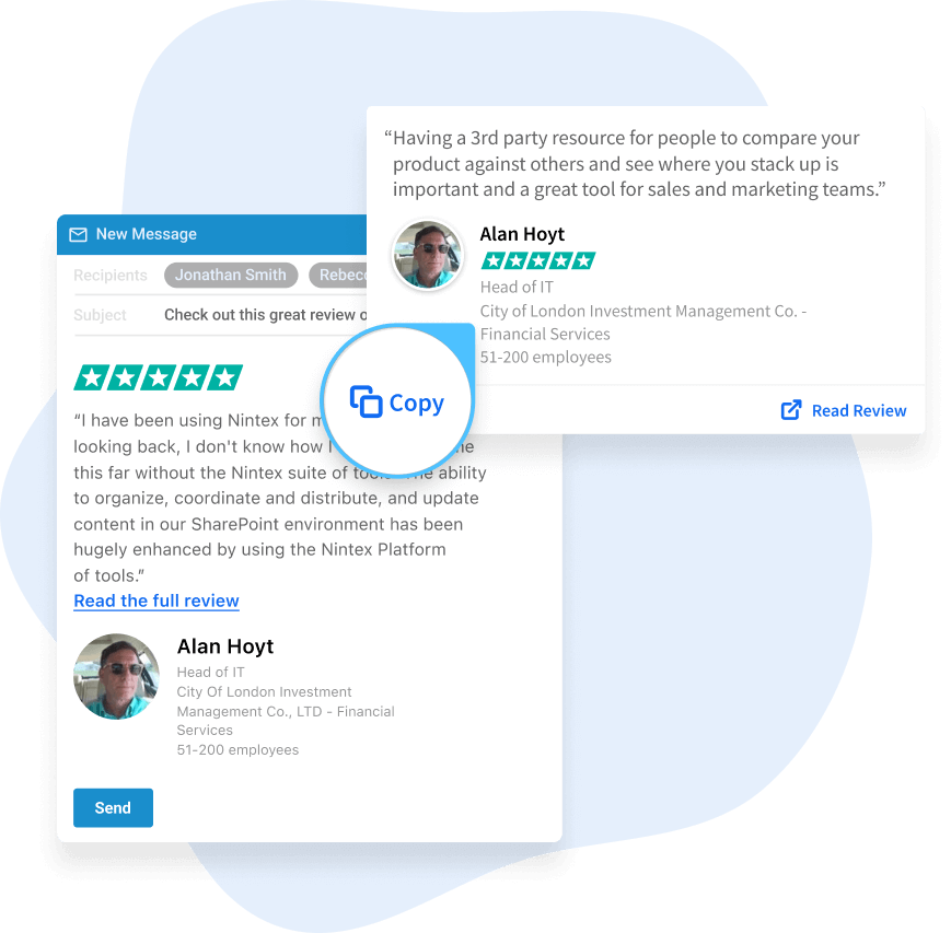 - Arm your sales team with valuable customer proof and easy access to review quotes.