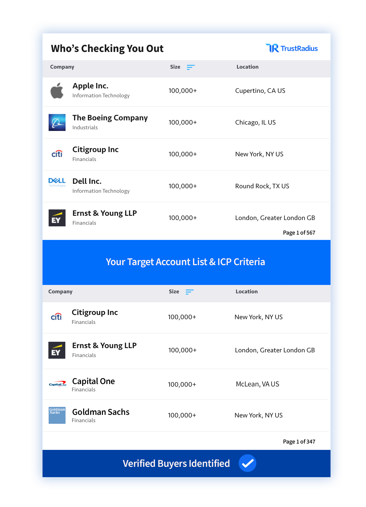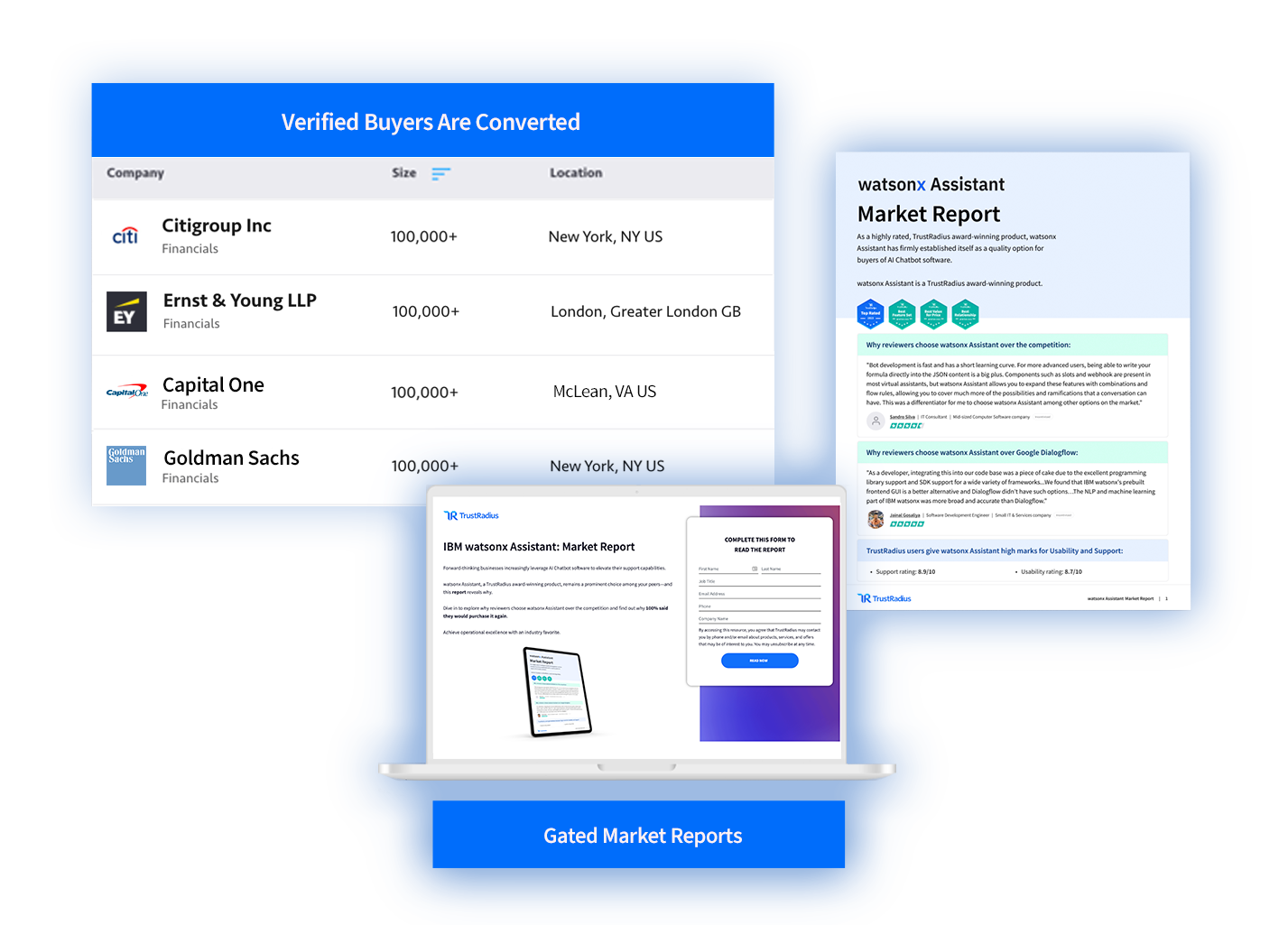 Are you being asked to drive pipeline with limited budget, underperforming intent sources, or overall diminishing return on investments? If it feels like you're doing all the right things to reach your buyer, but you aren't hitting your revenue targets, you're not alone. Sales and marketing effectiveness is the number one challenge plaguing go to market teams. And the real reason for this is buyers don't trust you. They don't trust your website, marketing collateral, and they definitely don't wanna talk to sales before they're ready to buy. Simply put, buyers have trust issues. They don't wanna get fired for buying the wrong tech, and we can't blame them. They want real proof from real people that your product works, and user reviews are a top three influence on their decisioning. That's why technology buyers visit TrustRadius each year to read reviews and do in-depth research on tech solutions. Wouldn't it be great if you knew who those buyers were? Now you can. TrustRadius intent driven leads program captures buyers reading reviews, comparing you to competitors, watching demos, and more, and turns them into ICP match leads. TrustRadius customers are already seeing results from this powerful new program. Here's how it works. TrustRadius captures account information from who's checking you and your competitors out. We then filter those accounts by your target account list and ICP criteria identifying truly qualified accounts. Next, TrustRadius targets those buyers with trusted market reports and customer stories derived from your reviews. We already know reviews are very influential to buyers, and these content assets give you the authority you need to grow your buyer confidence and trust. Those leads are seamlessly integrated into your system of choice for sales and marketing follow-up. It's simple. You may be familiar with this type of formula, but the data quality and execution is very different. Why? First off, it's our first party intent data. No blended sources, which means no junk. And the buyers on Trust are truly in market. Fifty six percent plan to make a purchase decision in three months, and we have the most decision makers of any other peer review website. In fact, customers that have used Trust Radius intent driven leads have been so pleasantly surprised by the seniority of their leads, they've redefined their go to market strategies to better target them. Your dedicated program specialist will guide you each step of the way, ensuring leads are delivered on time and your nurture strategy is on point. You can expect high quality leads that are verified buyers, increased conversion rates and account penetration, pipeline growth and revenue acceleration. Ready to get started? Schedule a free strategy call below.