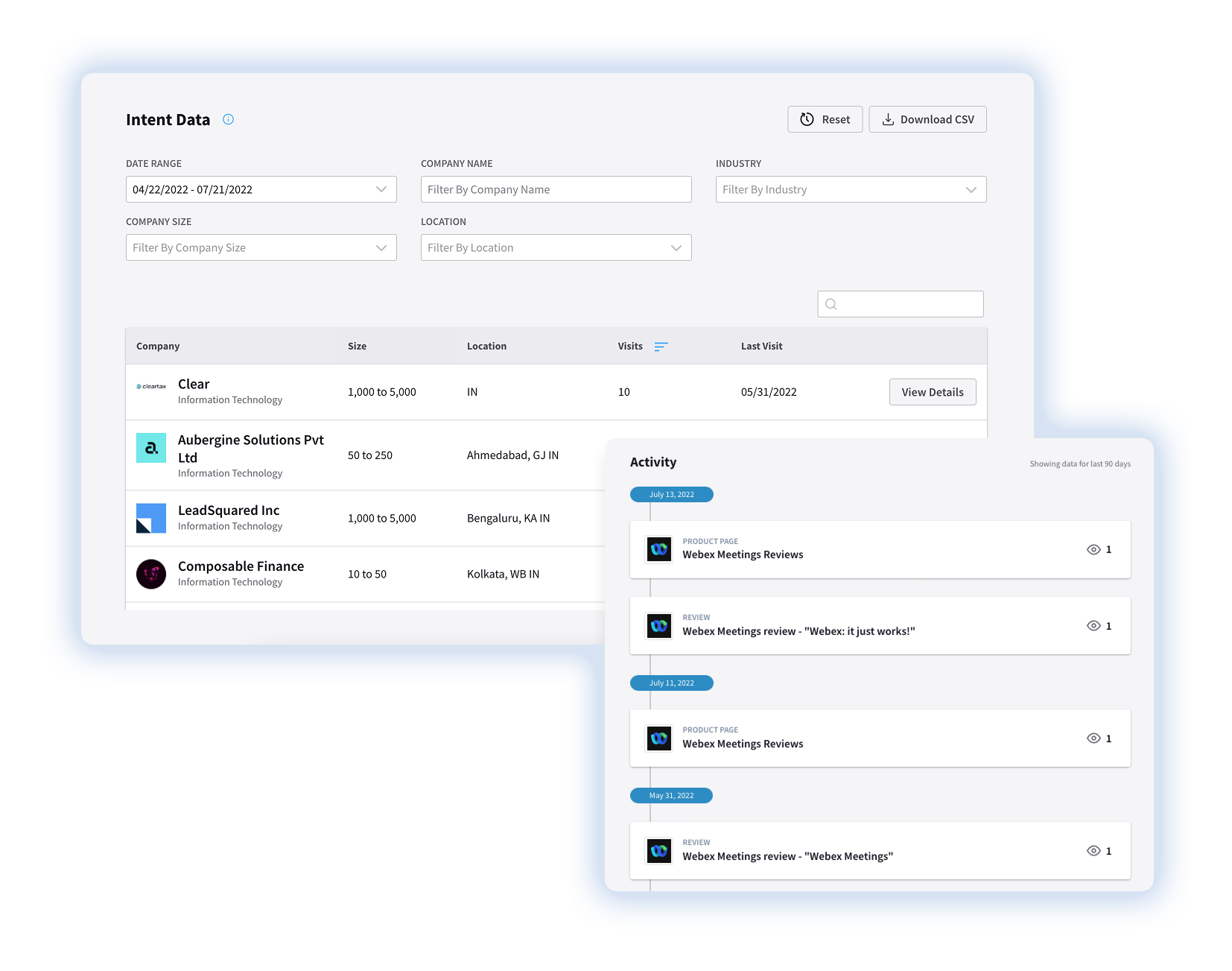 - Deliver sales leads with downstream intent context to drive high conversion engagement.
