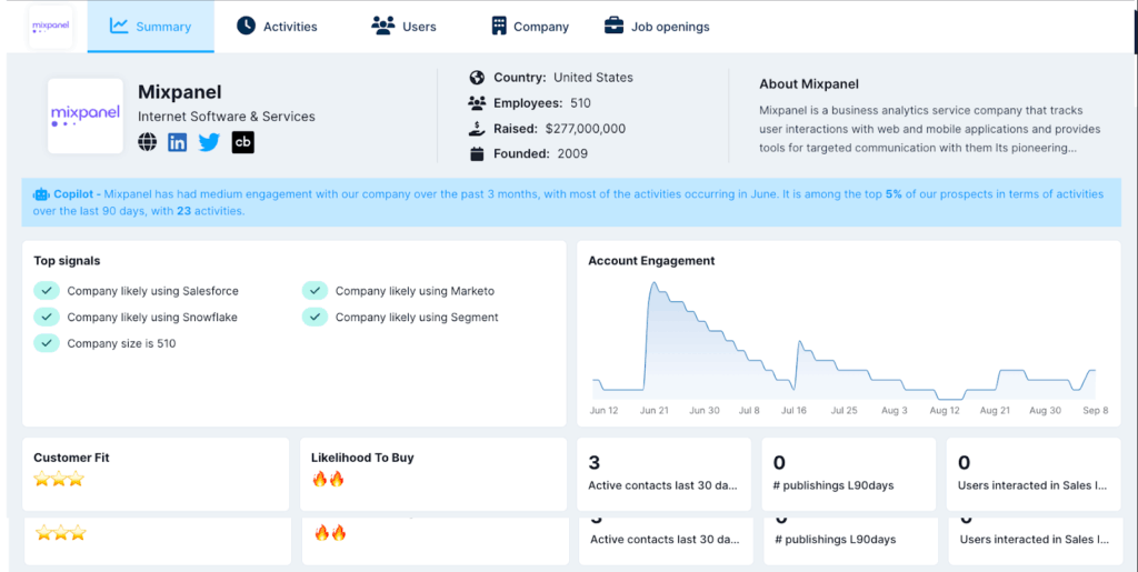 - There was no easy way for sales reps to access the right buying signals at the right time within their existing workflows – it was difficult to see which users were engaged.