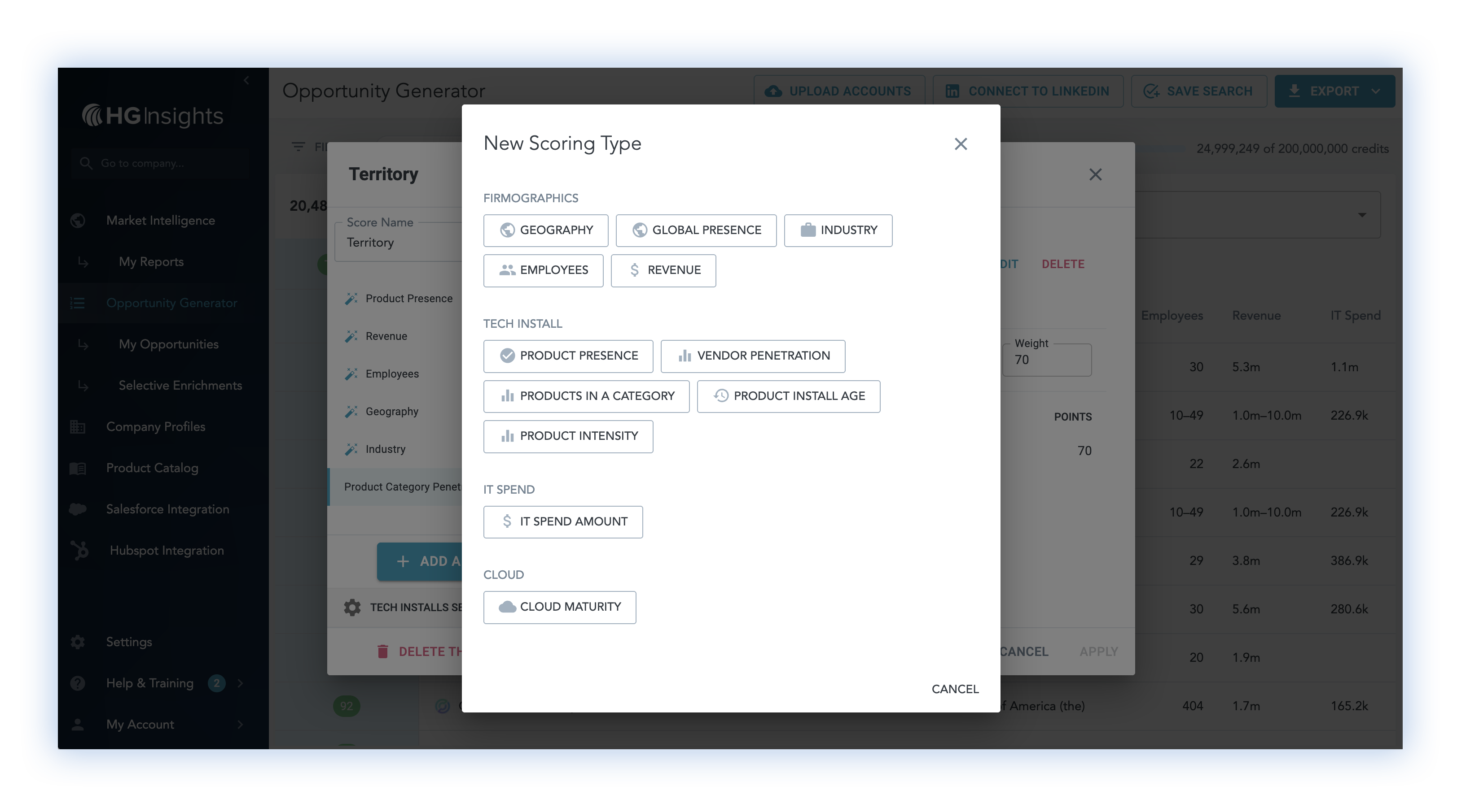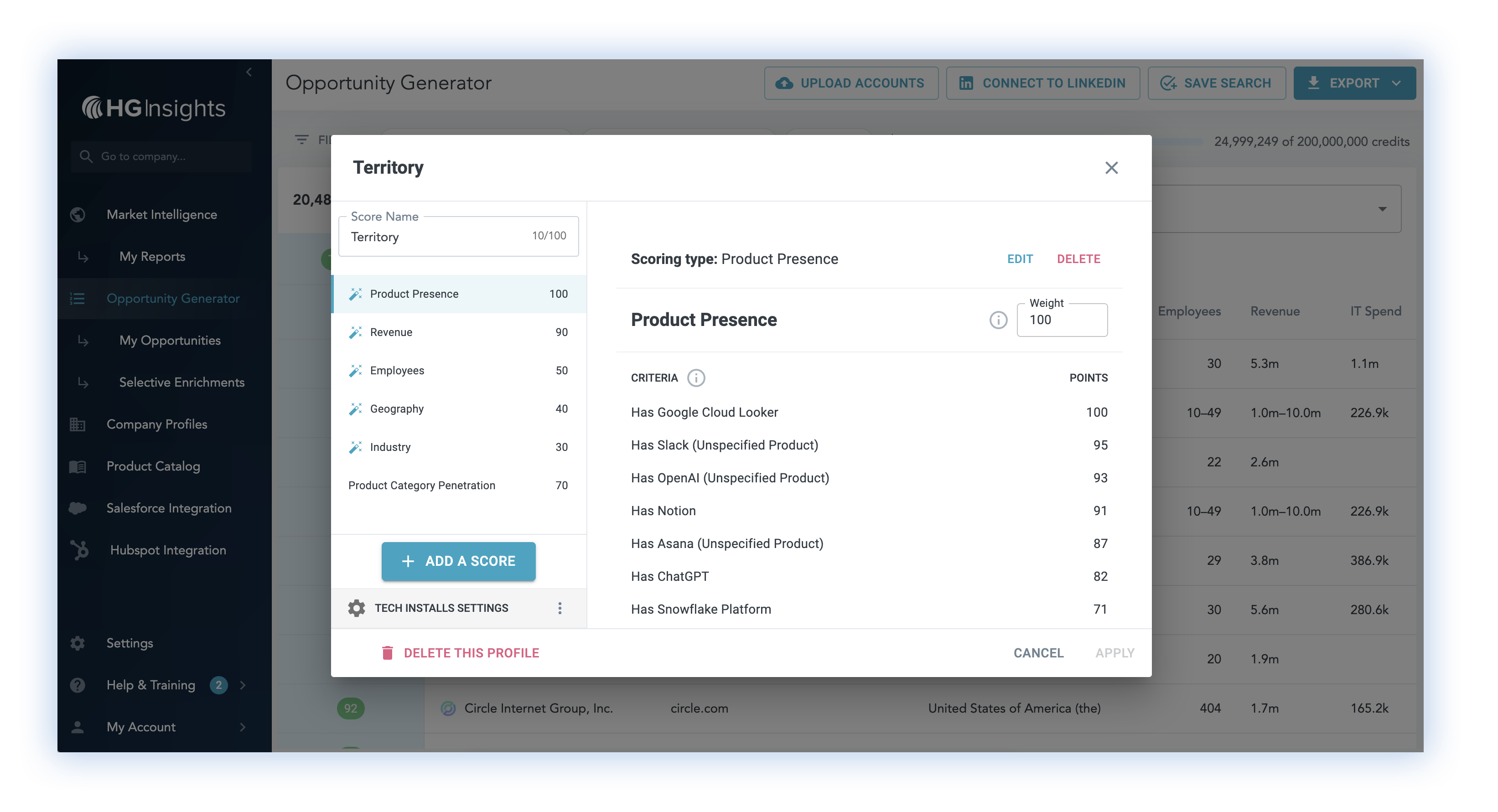 Define, score, balance, and deploy sales territories using HG Insights for equitable coverage and increased sales productivity