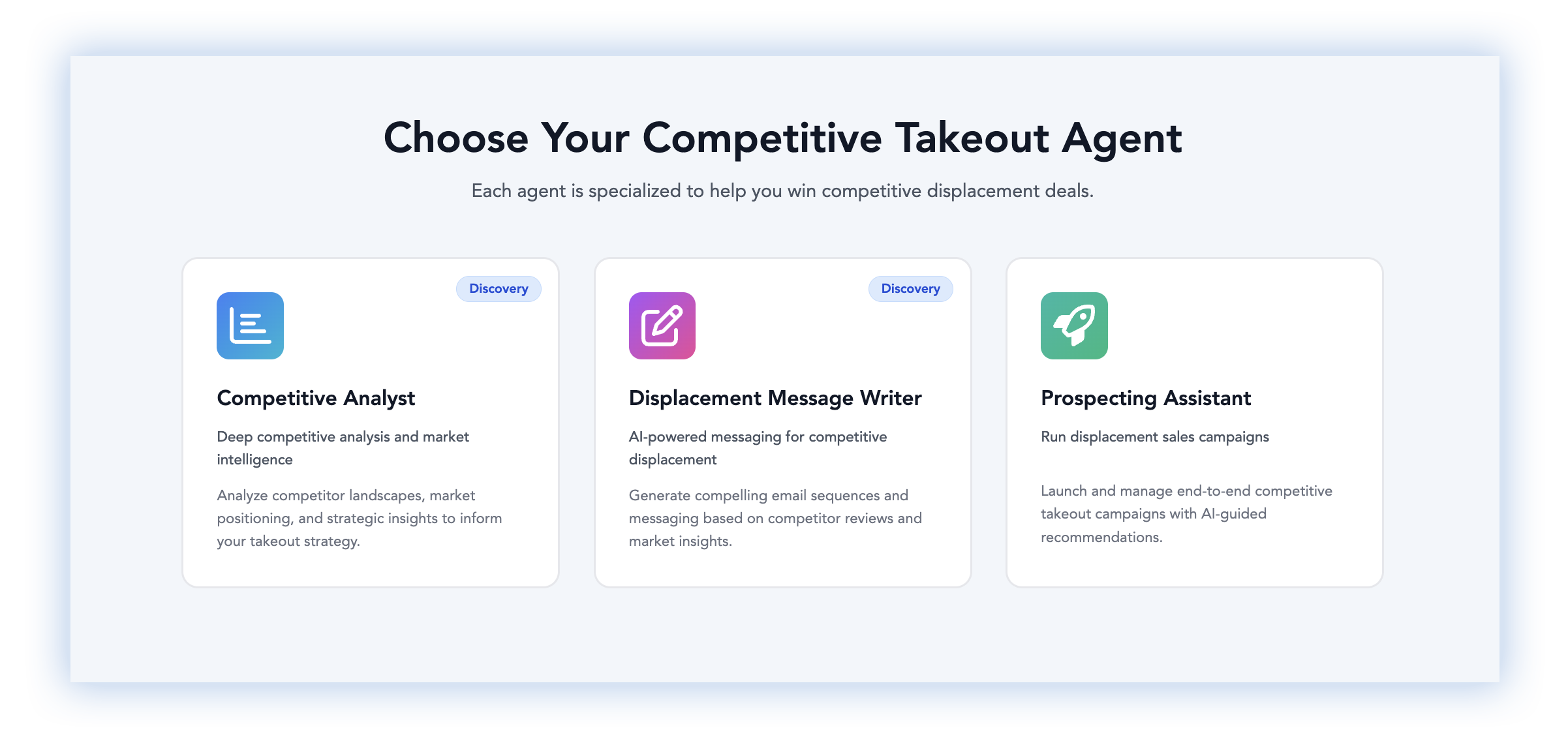 Identify your competitors’ weak spots, reach out to their customers at the best moment in the renewal cycle, and automate your takeout campaigns, all within the tools you already have.
